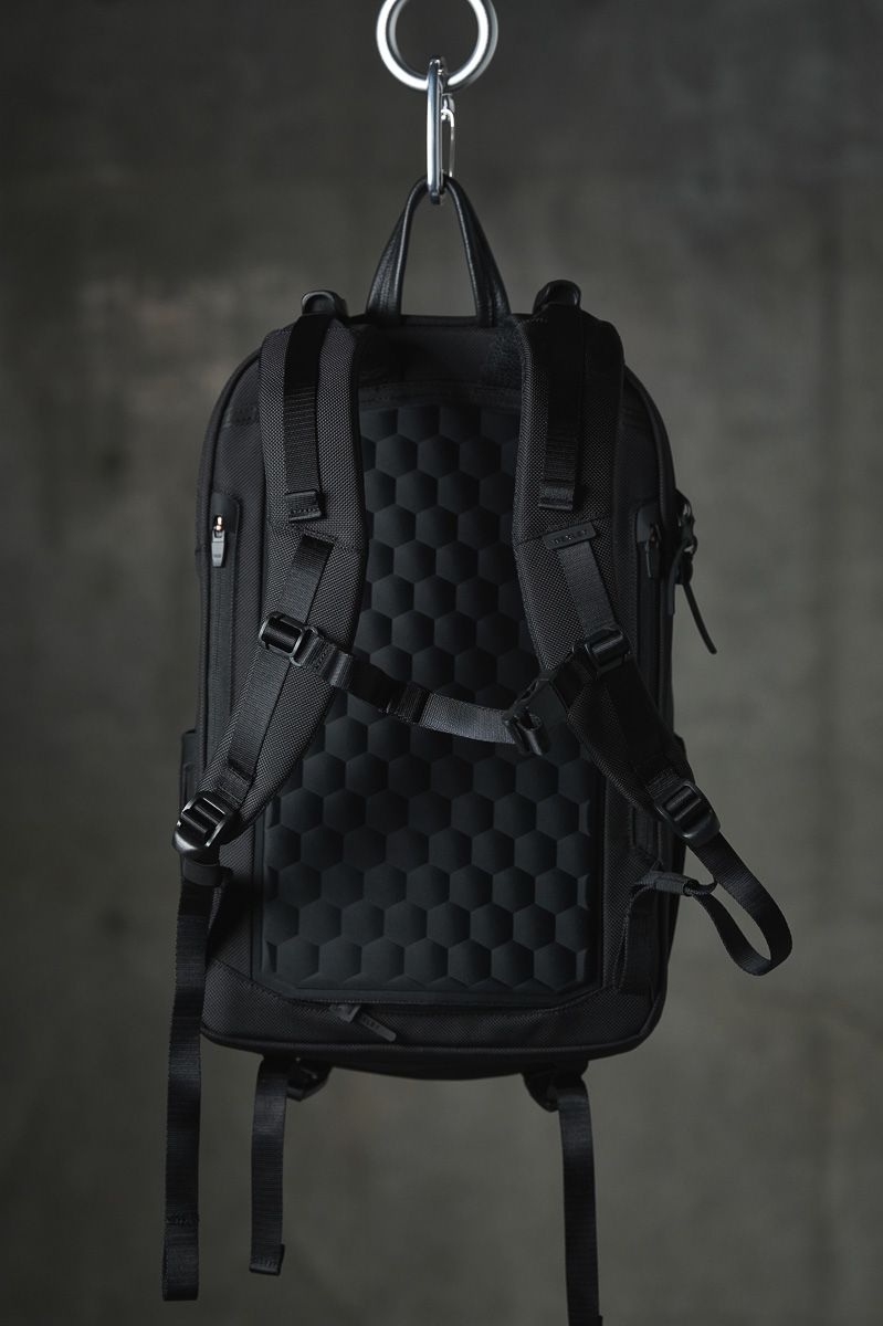 荷重調整が可能な太めのショルダーストラップや、背面のハニカムEVAフォームバックパネルによって背負い心地は快適! 他にも取り外し可能なチェストストラップや、電車内で手持ちができるレザートップハンドルも付属しています。