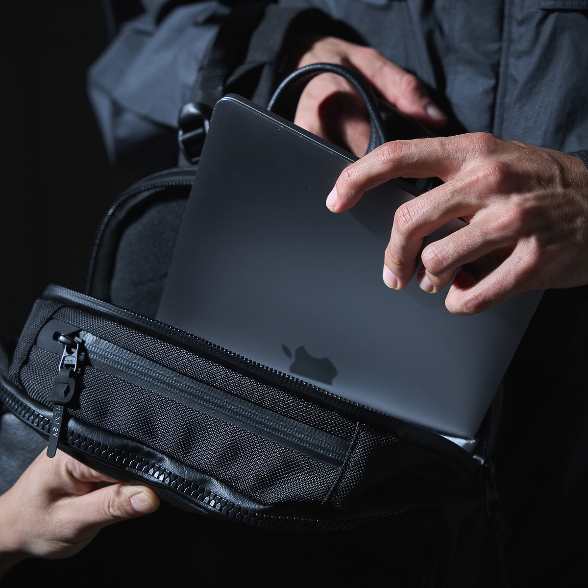 日本仕様らしく素材やパーツにこだわっているのが特徴で、ボディには撥水グレインレザーとコーデュラ社製のバリスティックナイロンを使用。耐久性や耐水性を担保しつつも、高級感のある仕上がりに。また、ジッパーにも水の侵入を防ぐYKK社製のVISLON AquaGuardジッパーを採用と、細部にも抜かりはありません。