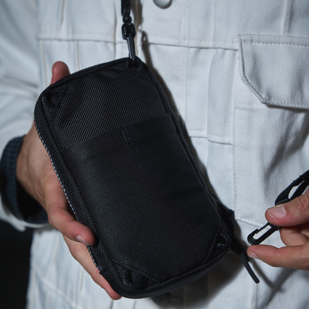 ミニショルダーは、第三弾の「4WAY SLING」をひと回りコンパクトにしたモデル。付属ストラップを調整、着脱することで、ショルダーバッグ、ウエストポーチ、ネックポーチ、クラッチバッグと使えます。