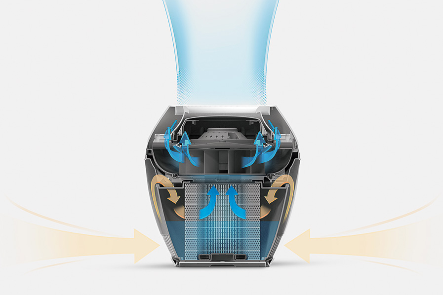 ▲2つのフィルターと銀イオンカートリッジが給水タンク内を清潔に保ち、気化した水だけを送り出す