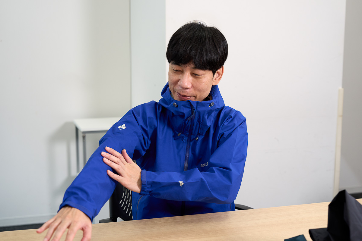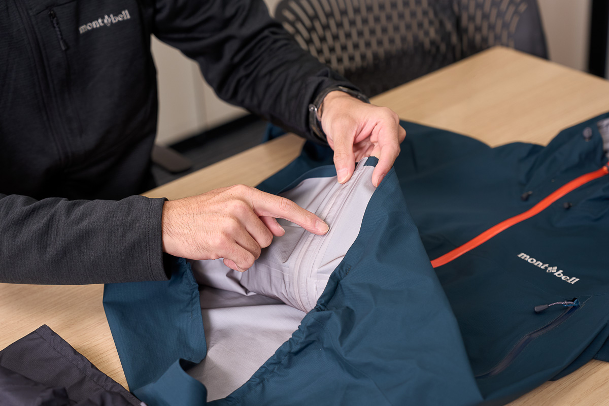 設楽:いま板倉さんに話していただいた通りで、モンベルと言えば「ストームクルーザー」と呼ばれるほどの看板商品です。1982年に開発されて以降、常にブランドのフラッグシップモデルとして、その時々の最新の素材や技術が使われているんですよ。今回に関しては「スーパードライテック」という新しい防水透湿素材を採用したのが大きい変化ですね。