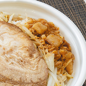 二郎インスパイア系として知られる大阪府を中心に展開するラーメン店「ラーメン荘 歴史を刻め」監修。豚骨ベースの濃厚なスープと、食べ応えのある太めのちぢれ麺の相性は抜群。嬉しい満腹感を実感できる。