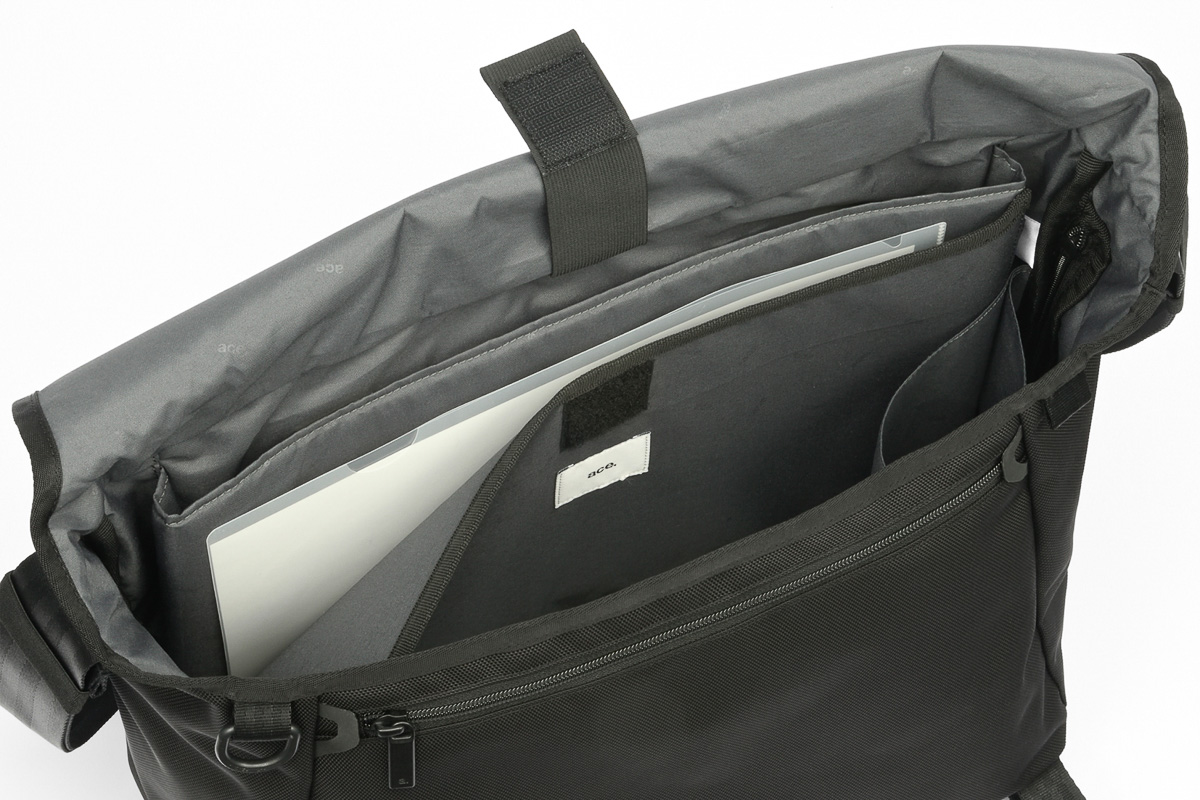 固定した後の荷物の取り出しもスムーズ。ショルダーバッグとトートバッグはクロスアクセスポケットも用意しメイン部分にアクセスできる側面ファスナーを配置。手前から荷物を取り出せ、不意な雨降りなどにもさっと対応ができます。もちろん、バックパックは通常のメイン開口部から取り出しができます。