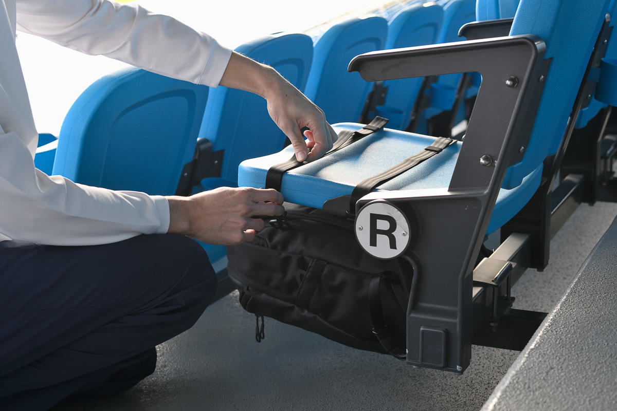 海外遠征だけでなく、日本国内のドームやスタジアム、近場の練習場とスポーツを間近で観戦したい欲が湧き上がってきたのなら、会場へ向かう前にそれなりの装備がやはり必要。応援グッズにウェアに加え、忘れてはならないのが“バッグをどこに置くか問題”。人が通るたびにバッグが邪魔に…。そして、盛り上がった拍子にビールカップが倒れ、床をつたってじわわ〜! そして床とバッグが大惨事に。