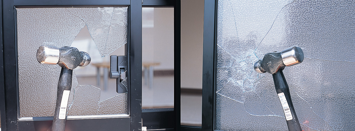 ▲フィルムを貼らないと容易に割られて解錠されてしまう。貼るだけで効果があるので確実に取り入れたい