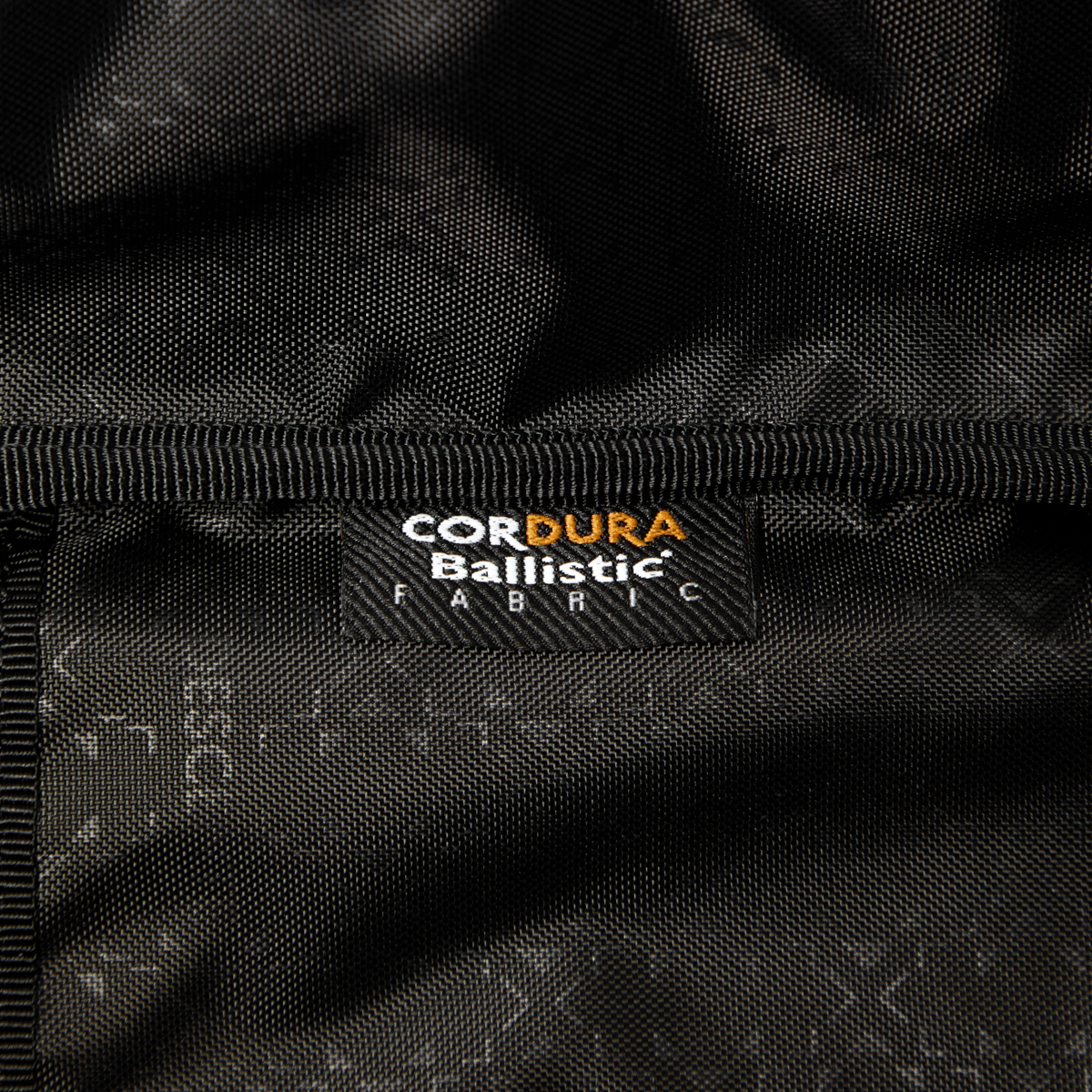 素材には、軽量性と強度を両立したインビスタ社のCORDURAを採用し、そこに塩縮加工を施すことで、独特の凹凸感がある風合いに仕上がっています。
