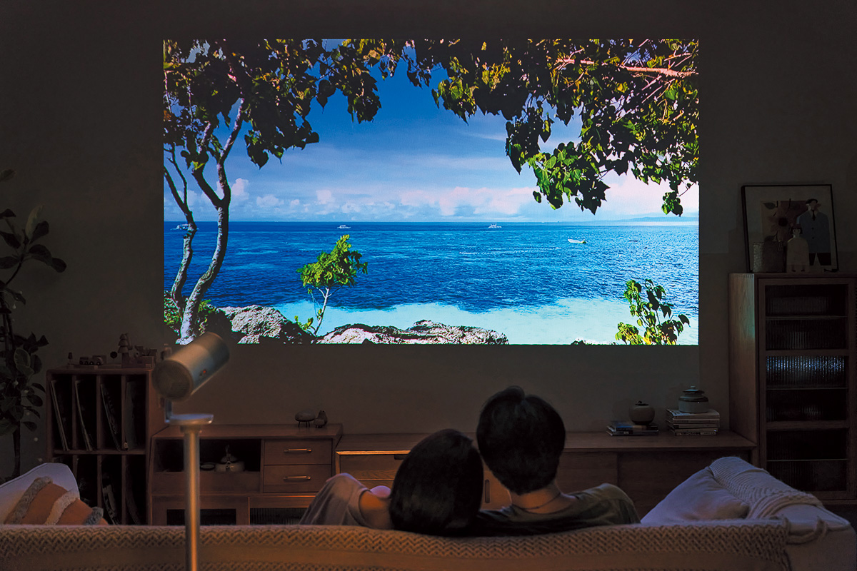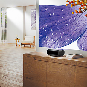 壁からわずか15cmで100インチの投影が可能な4K超短焦点プロジェクター。3色レーザー光源による3650 ISOルーメンという圧倒的な明るさと鮮烈な色彩表現を兼ね備える。