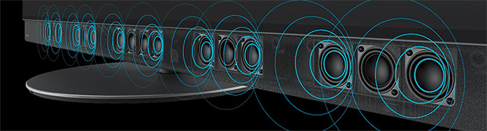 ▲多数のスピーカーユニットを前向きに並べることで、解像感の高いクリアな音と厚みのある音を実現した ※画像はTV-65Z95Bのものです