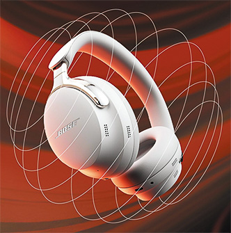 BOSEによるワイヤレスヘッドホンの最高峰モデル。空間オーディオ機能の「ボーズイマーシブオーディオ」が、あらゆる音源を立体音響で体験可能にする。