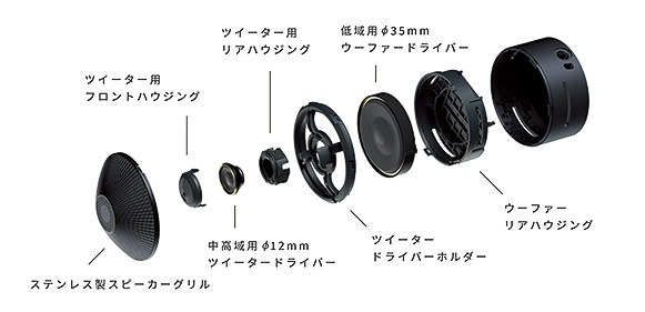 ▲X-Balanced Speaker Unitを搭載。振動板の面積を最大化し、小型ながら迫力の重低音と音圧を両立する