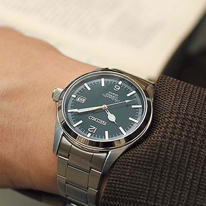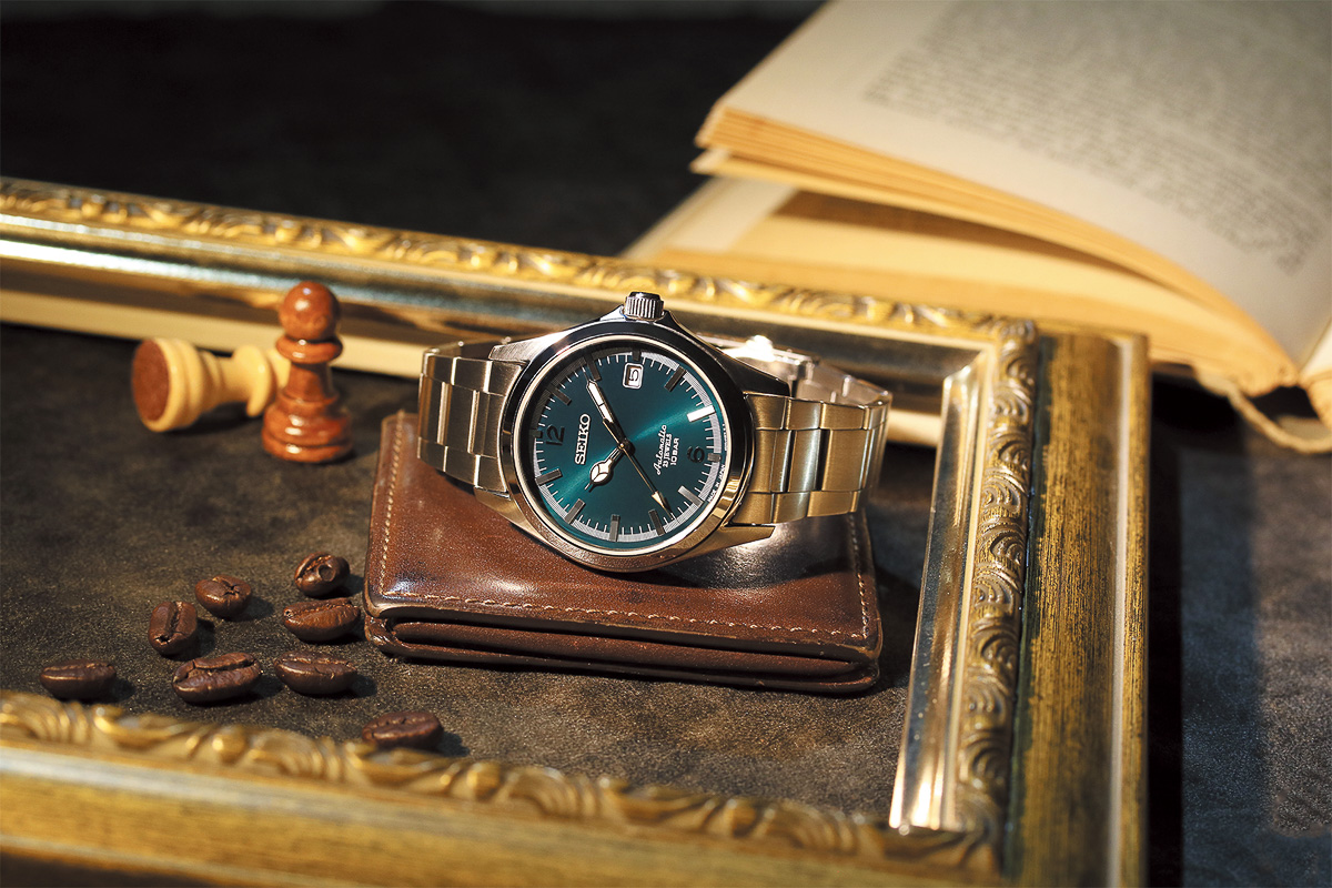 「3針は好きだけど少し捻りがほしい」という人にすすめたいのがこちら。ダイヤルに深みのあるグリーンを効かせることで、ヴィンテージ感のある表情を生み出している。