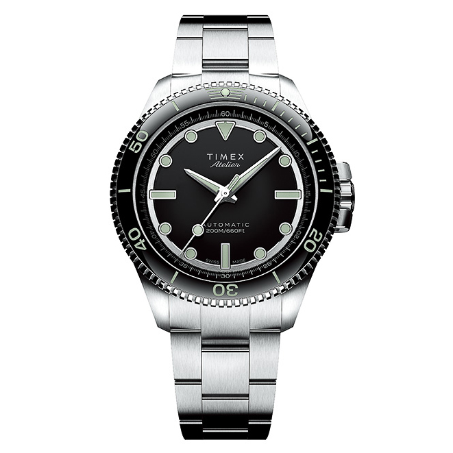 170年以上の歴史を持つTIMEXの本格ダイバーズ。造形の美しさは全方位に隙がなく、41mmのサイズバランスも秀逸。200mの防水性能を備えており、機能面も万全です(若澤さん)
