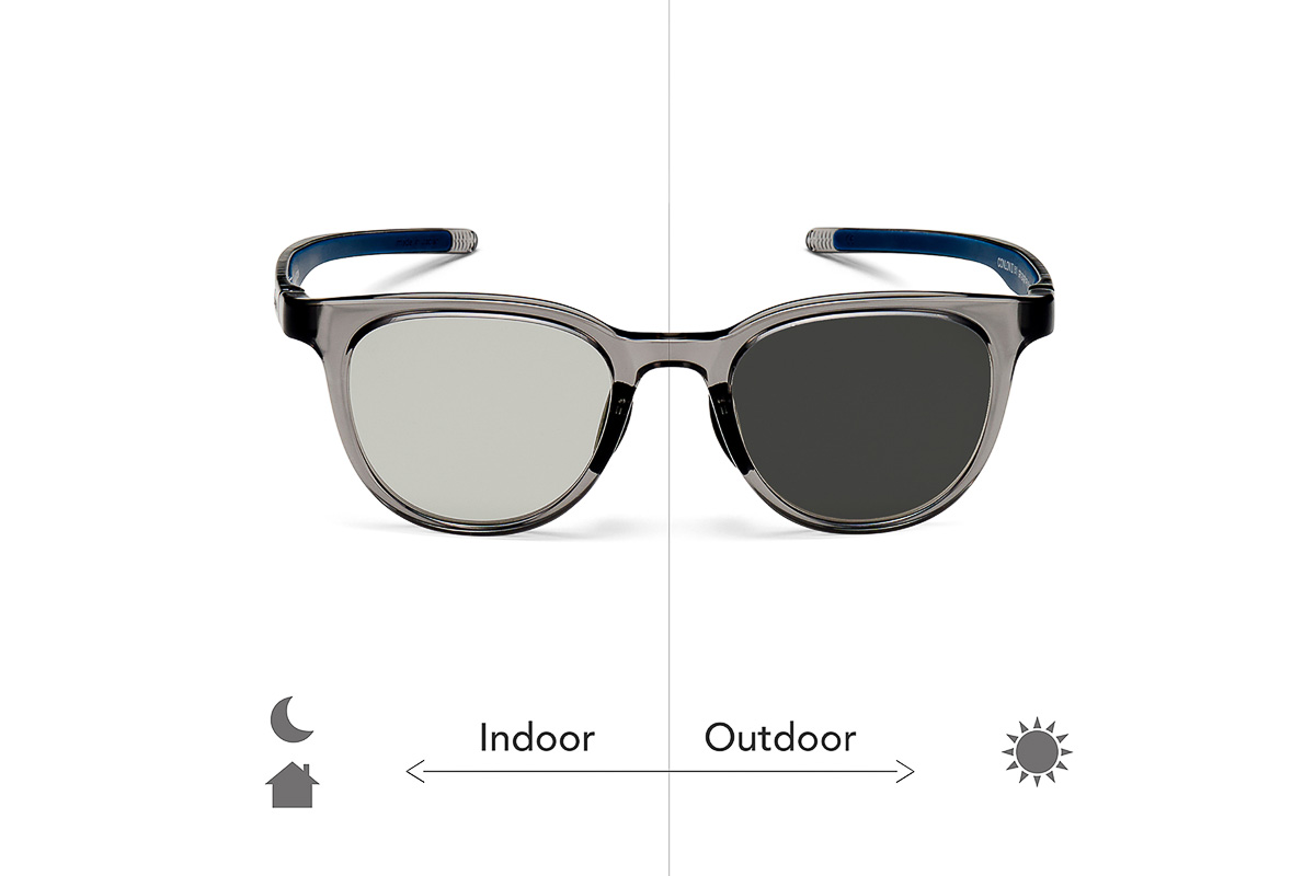 また、調光レンズは紫外線によって濃度が変化し、室内では透明感のあるグレー、屋外では濃いめのグレーに色味が変わる仕様なので、サングラスの活用シーンでカラーを選ぶのもアリです。