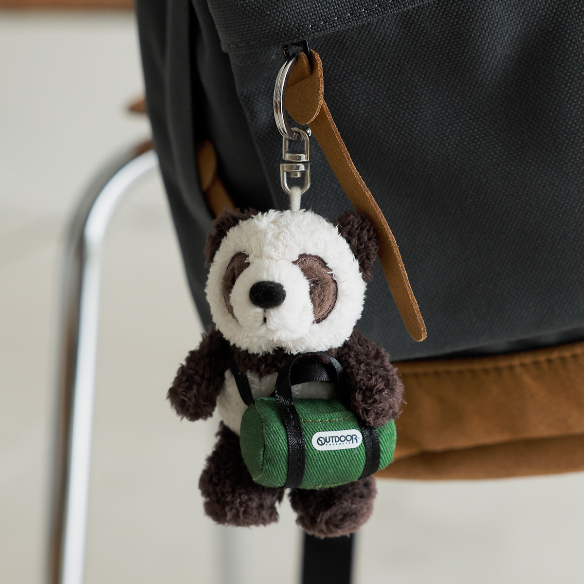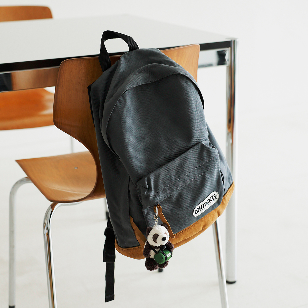 続いてはアウトドアプロダクツのベーシックなバックパックと、そのアウトドアプロダクツが人気ぬいぐるみブランドであるニキとコラボを果たしたチャームの組み合わせ。クラシカルな“ザ・バックパック”にポップな空気感が足され、何とも可愛らしい雰囲気に。アウトドアプロダクツのボストンを抱えたパンダなら、ギア好きのメンズにも刺さるのではないでしょうか。