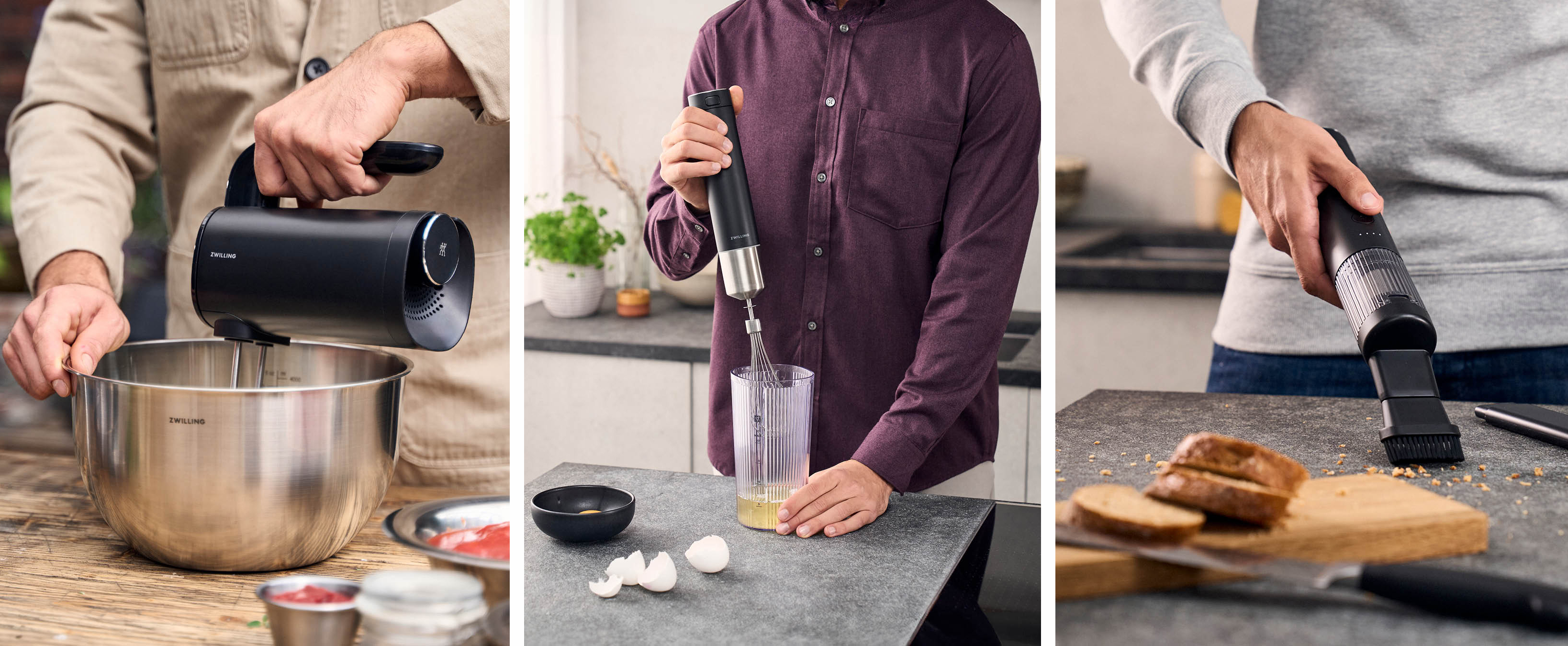 キッチン家電を“システム”で揃える…そんな電動工具のようなワクワクを届けてくれるのが、ツヴィリングの「XTENDシリーズ」です。最大の特徴は、シリーズ共通で使い回せる専用バッテリーがひとつあれば、パワフルな「ハンドブレンダー」(1万5400円)から「ハンドミキサー」(1万3200円)、さらには「ハンディクリーナー」(7700円)まで、カチッと付け替えるだけで自在に操れます。最初は「ハンドブレンダースターターセット」(2万7500円)など、バッテリー同梱セットがおすすめ。