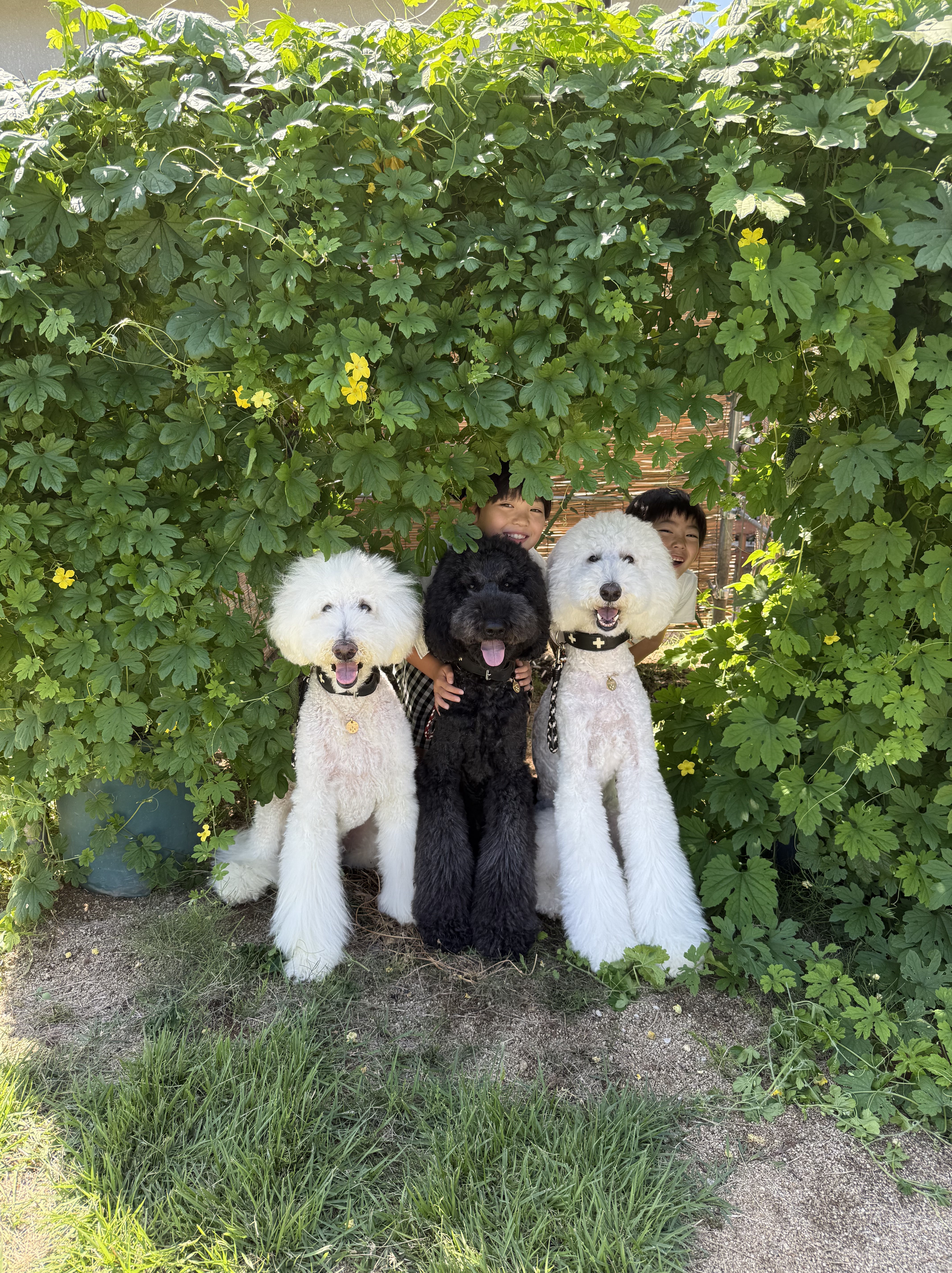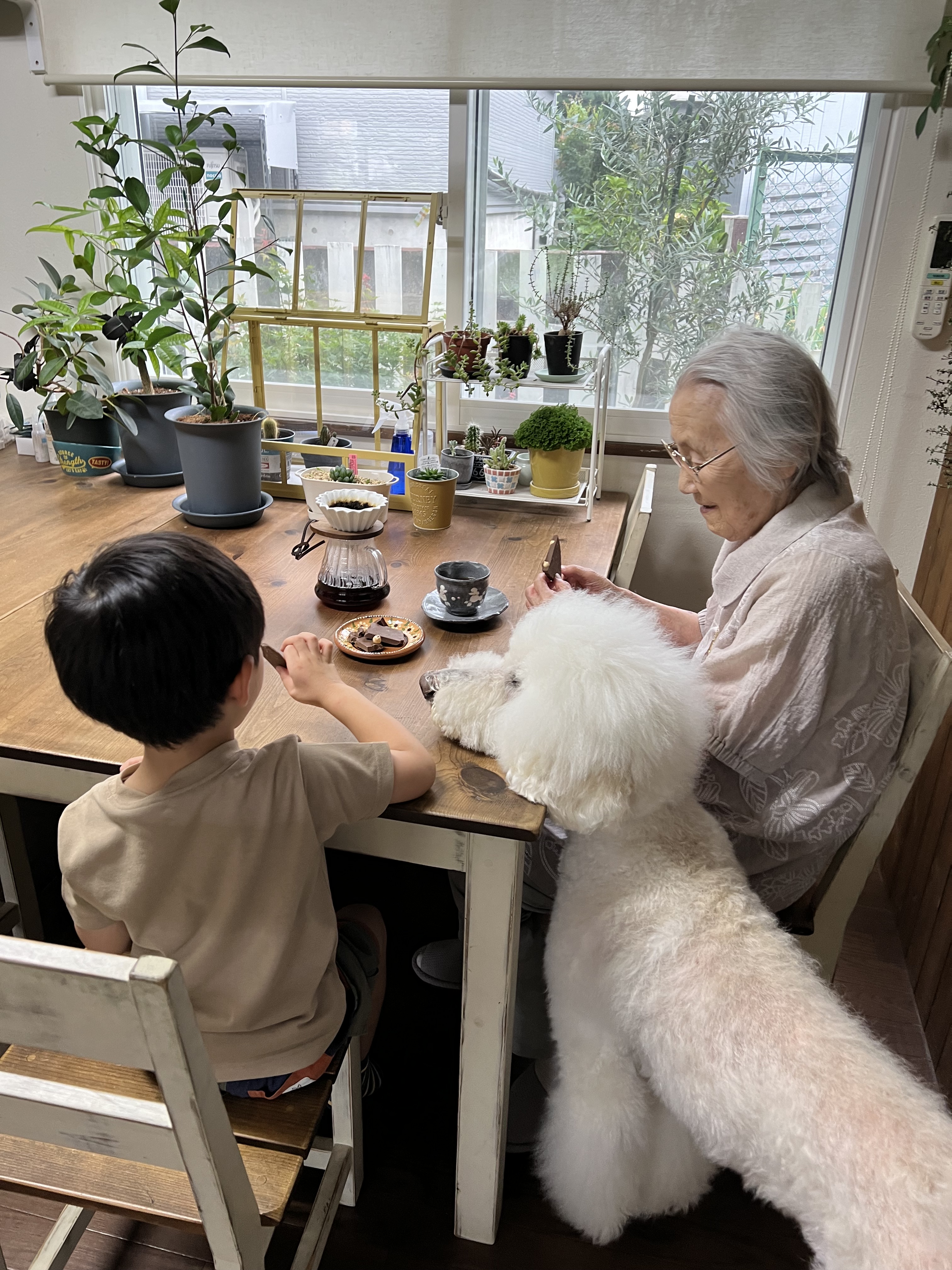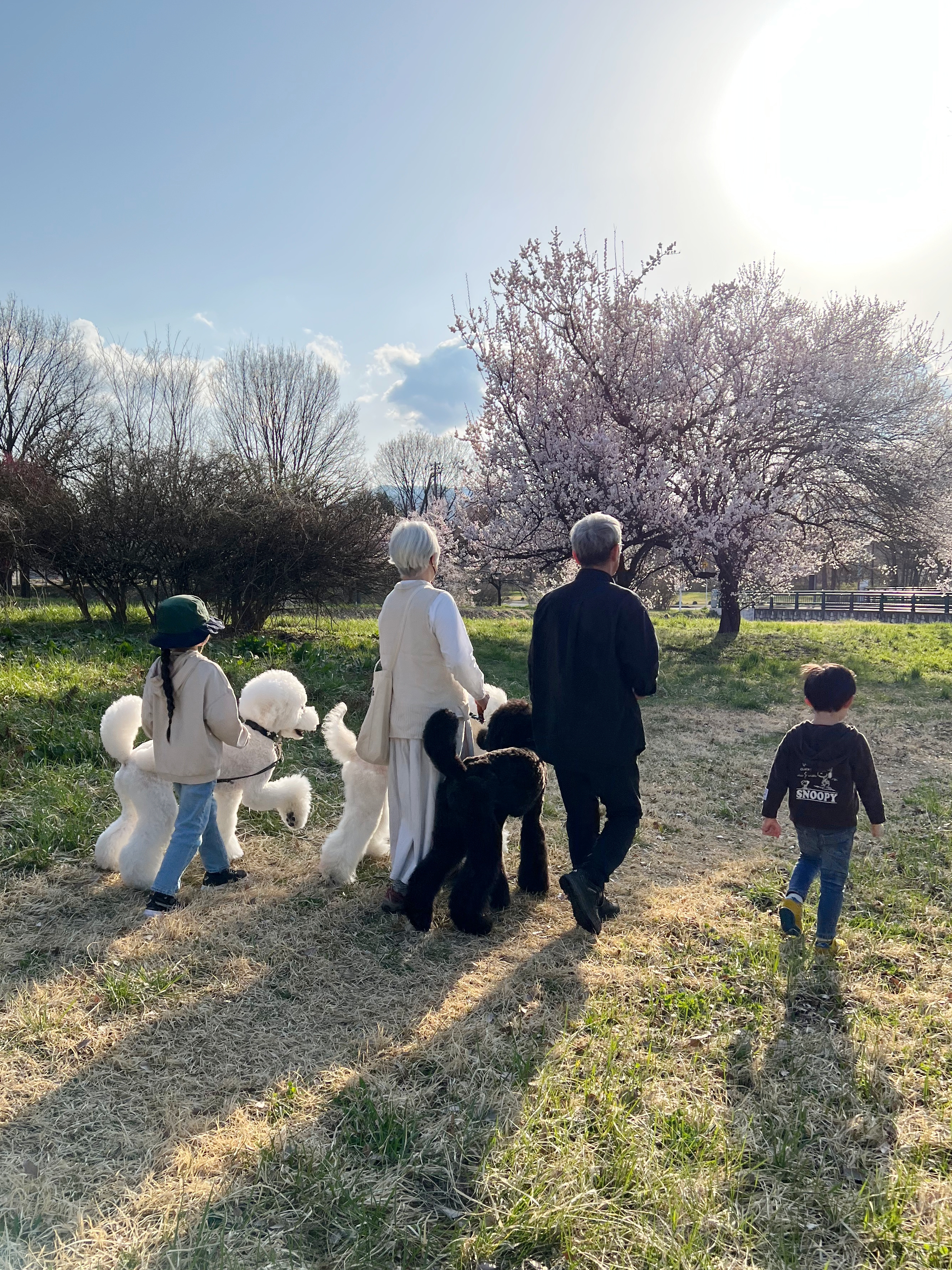3頭のスタンダード・プードルと暮らすたまねぎさんは、夫の大将さん、息子夫妻、10歳と7歳の孫、89歳の母という世代同居の7人家族。愛犬と家族の心温まる日常を発信するたまねぎさんのSNS(@tamanegi.qoo.riku)は、国内外で共感を集めている。
