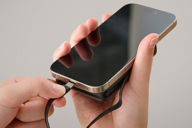バッテリー容量は5000mAhでiPhone16 Proで約0.88回、iPhone17 Proだと約0.77回の充電が可能(USB-Cケーブルで充電した場合)。大抵のスマホは8割近く充電できるので、動画視聴やゲームを長時間しない限り、1日しっかり使うことができます。出かける前にスマホの充電し忘れに気がついても、通勤の間に充電はバッチリ!