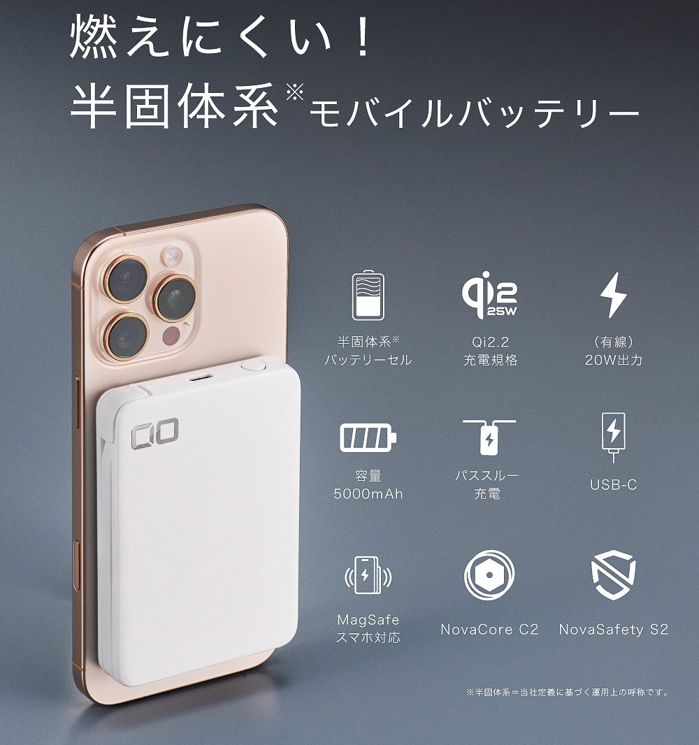 ◆発熱、膨張、液漏れリスクを大幅低減。「準固体モバイルバッテリー」に注目!