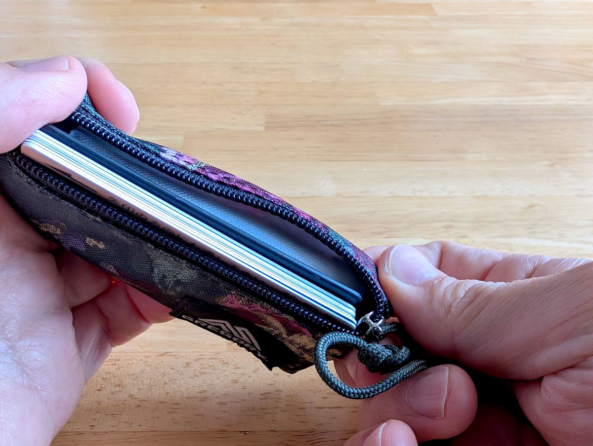 4位の「ナノコインワレット」の方はマチがあり、サイズもひと回り大きい。一方の3位「カードサイズポーチ」はとにかくシンプル。マチなしでまさにカードサイズ。パッケージに付いていたパラコードを短く切ってファスナーの引き手に流用しています。