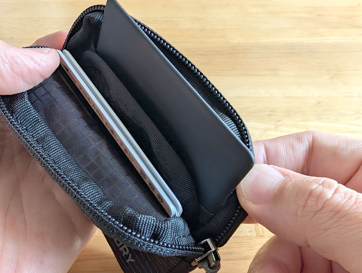 頻繁に出し入れするカードはないので、カード入れはできるかぎり小さくしたかったのですが、仕方ありません。