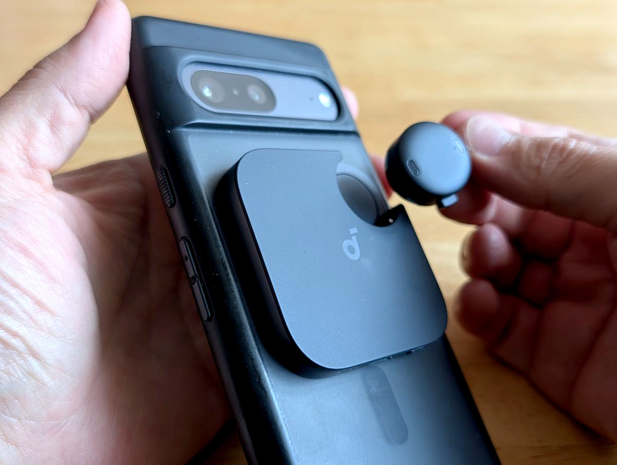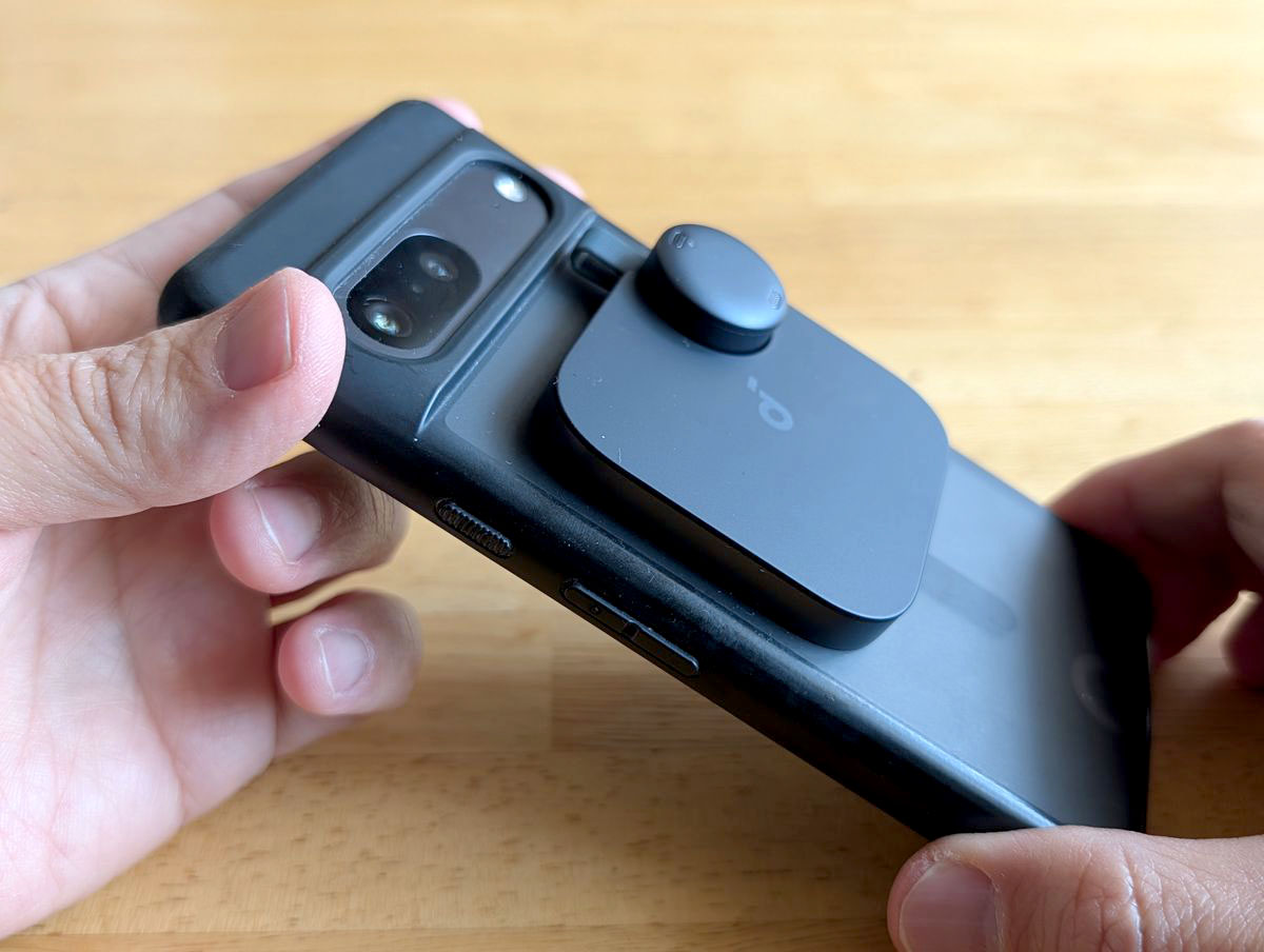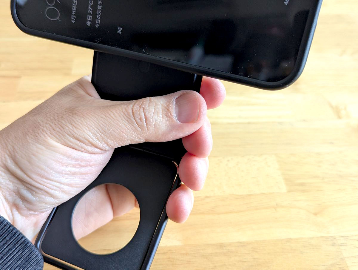 スマホの背面にマグネットでくっつけられ、厚さは7mm。重さも63gしかないので、付けっぱなしでもさほどジャマになりません。