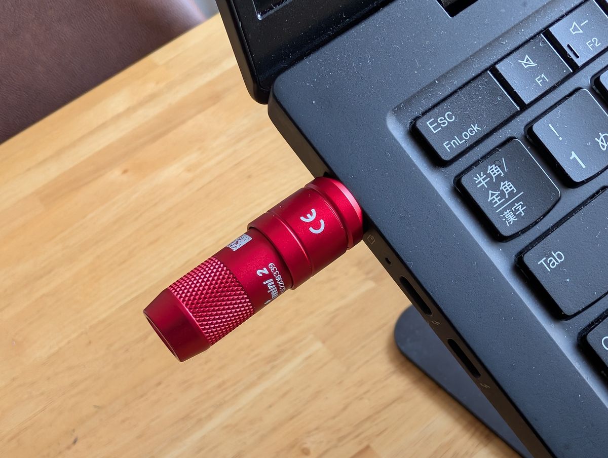 USB-CではなくUSB-Aというのが残念だなぁ、なんて思った人もいるのでは。実はUSB-C端子の「iUltra」というモデルも出ています。というかこっちが最新モデルのはず。端子部分もカバー取り付けではなくガード付きになっているなど、かなりブラッシュアップされているんですが、いかんせん高い。実売価格は約5000円です。しかもカラーがオリーブグリーンしかまだありません。暗いところで使うから、見つけやすい明るい色が良かったことなどもあり、そう頻繁に充電することもないだろうと判断し、USB-A端子の「imini 2」にしました。