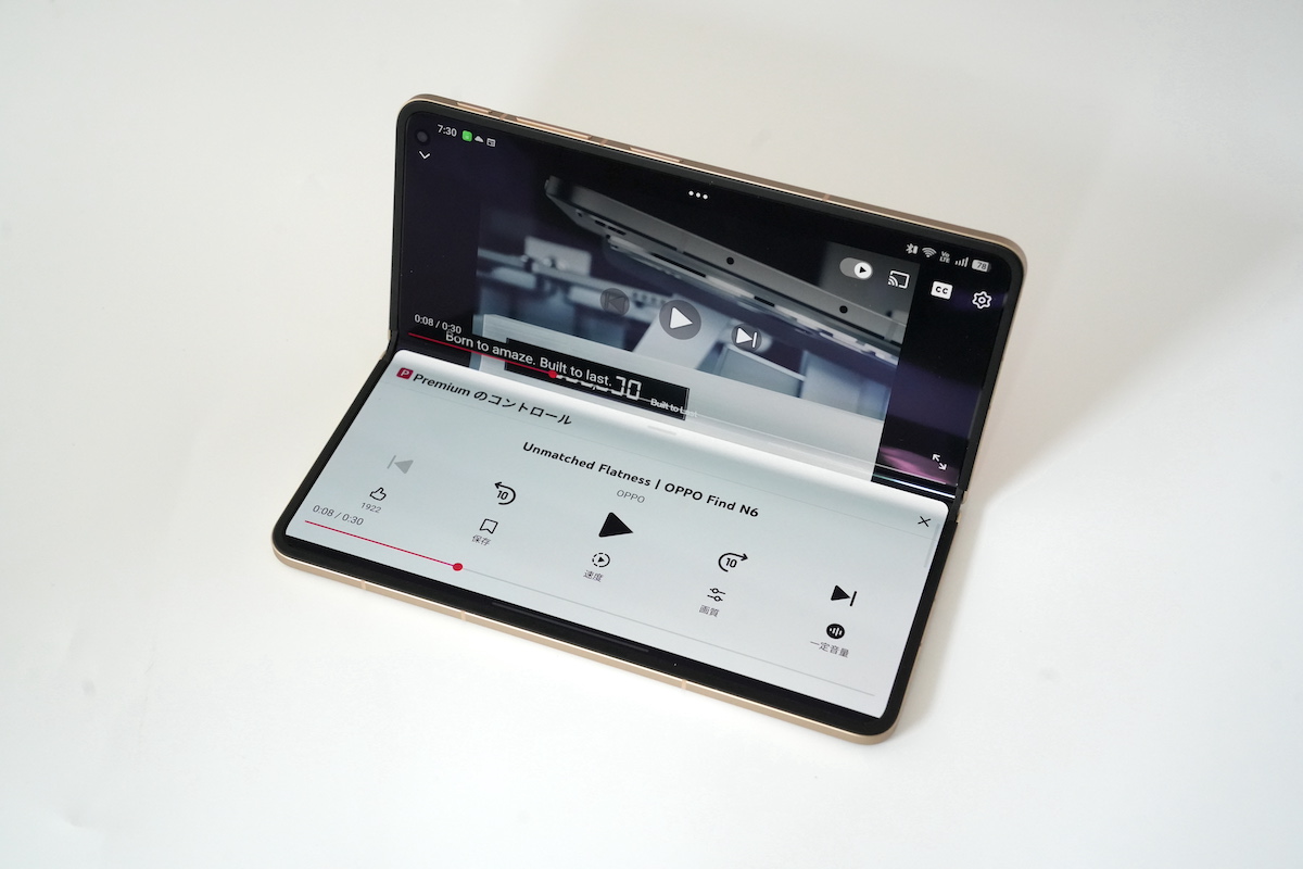 筆者は競合のGalaxy Z FoldやGoogle Pixel Foldを使ったことがありますが、それらの端末では見ても触れても折り目がはっきりわかり、光の当たり方によっては、視認性に影響を及ぼすようにも感じました。一方、Find N6のフラットなディスプレイには、指を引っかかることなく動かせて、タブレットを操作しているような心地よさがありました。