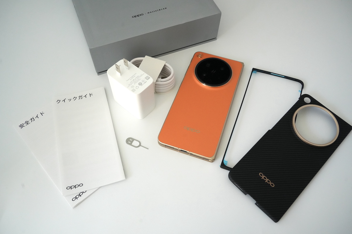▲Find N6の同梱品。80Wの急速充電アダプタのほか、純正のスマホケースも付属している