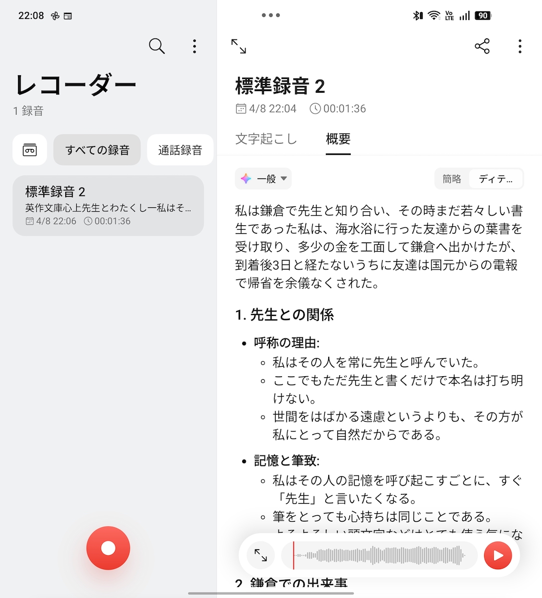 ▲プリインの「レコーダー」アプリは、リアルタイムの文字起こしや要約に対応