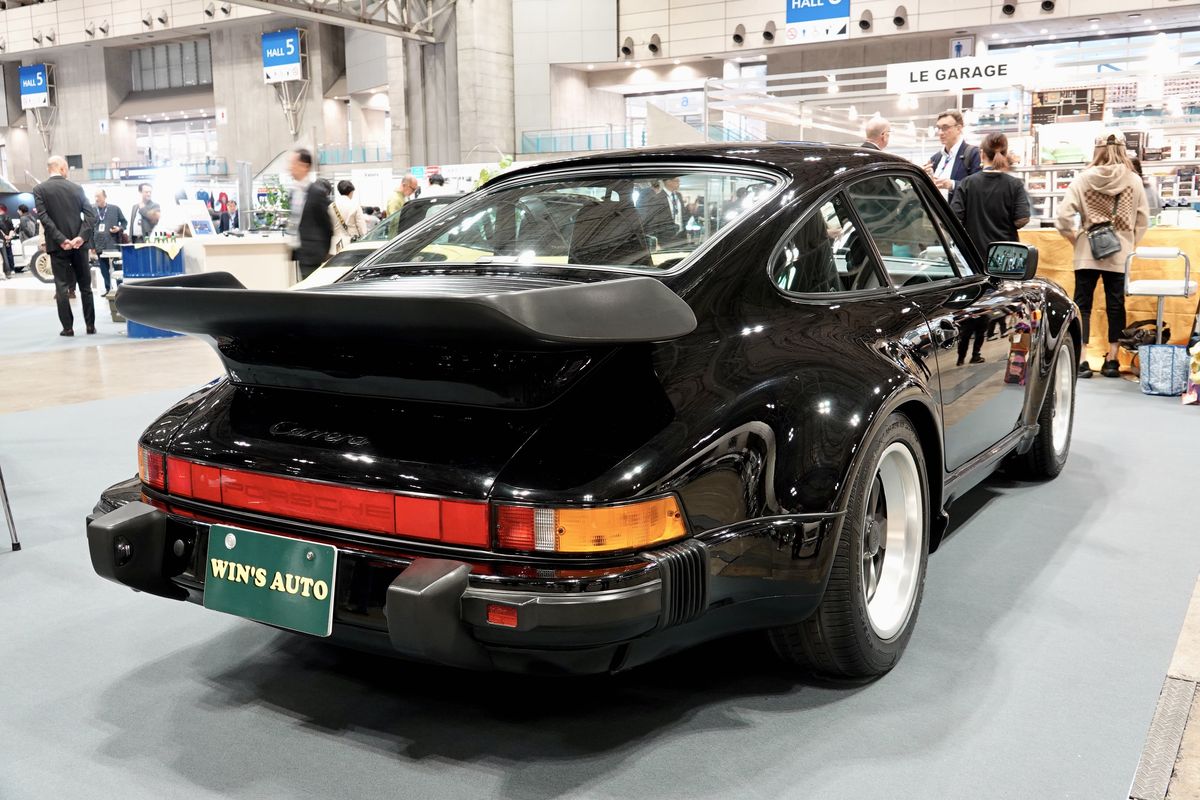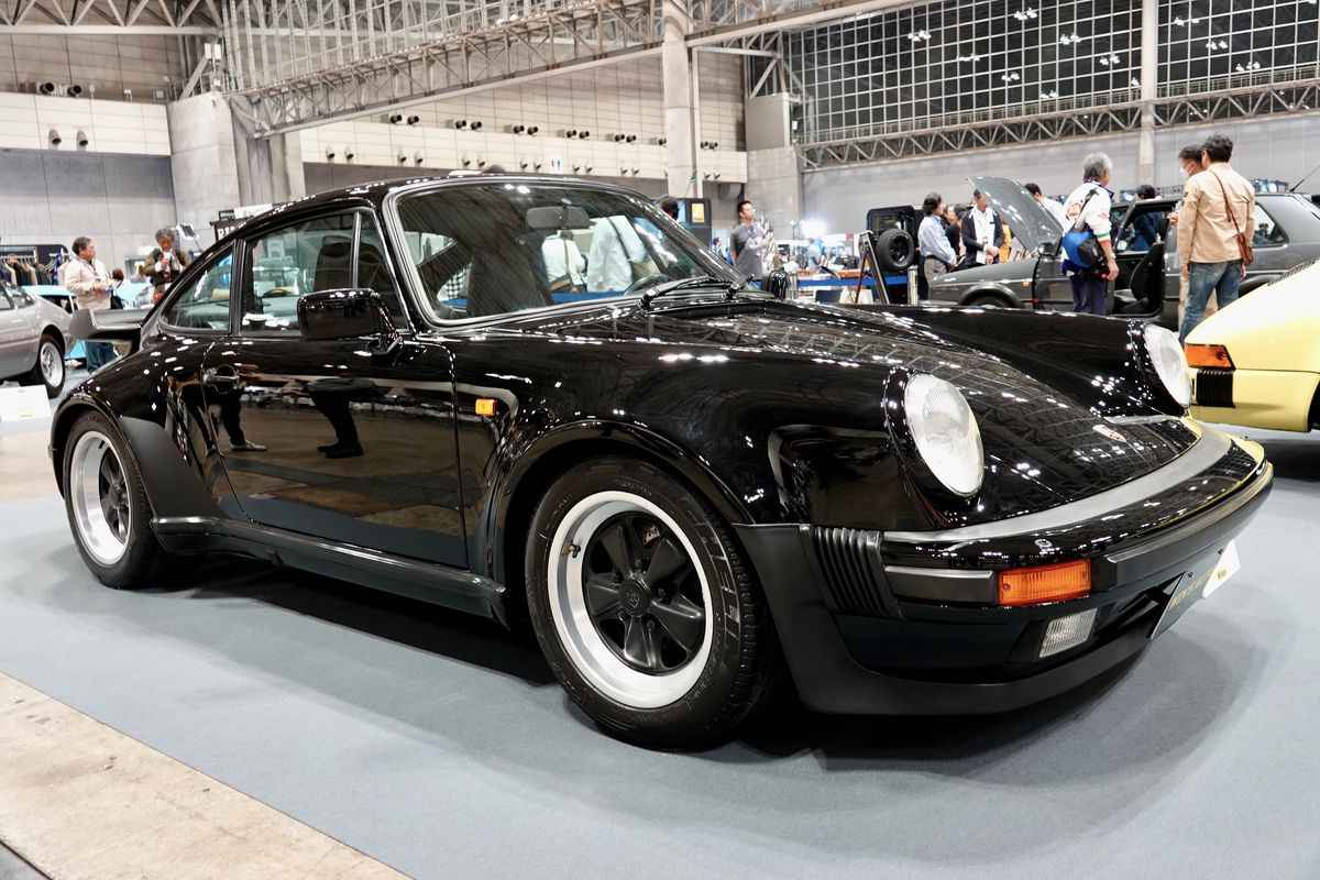今なお世界中に多くのファンを持つ「911」。今回会場で見つけたのは、1975年にフルモデルチェンジされた930型。アメリカの法規制に対応するため大型のバンパー(5マイルバンパー)が装着されたモデルです。930型は1984年に全グレード3.2Lエンジンが搭載されます。展示車両は大型のオーバーフェンダーになるターボルック。ワイドなボディと大型のリアウイングは今見ても迫力があります。