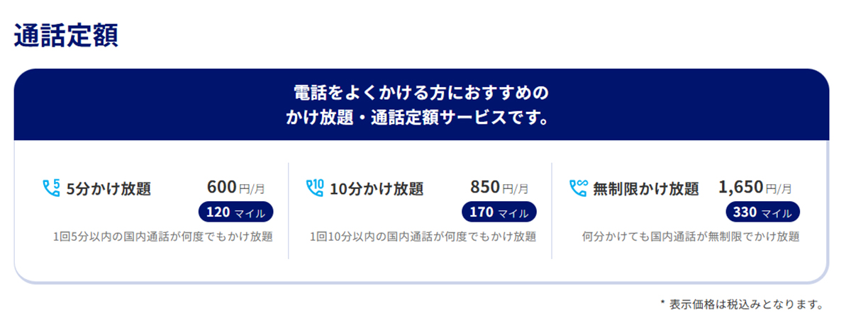 ※獲得マイル数は2026年4月時点のプラン料金に基づく計算です