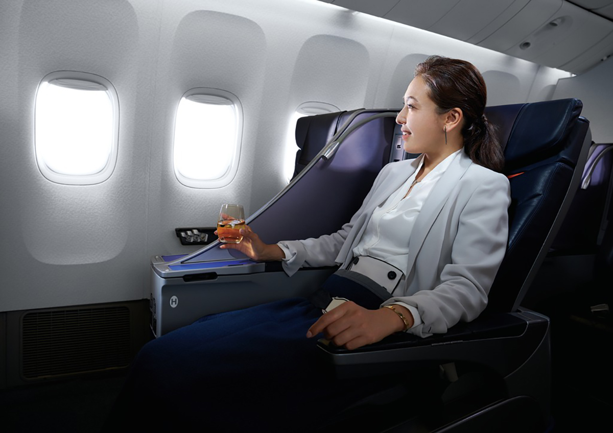 年間8000マイル貯まれば、東京や大阪発の一部路線においてプレミアムクラスにアップグレードが可能。27日前から申し込みが可能で、ラウンジの利用もできるため、ワンランク上の旅を楽しめます。