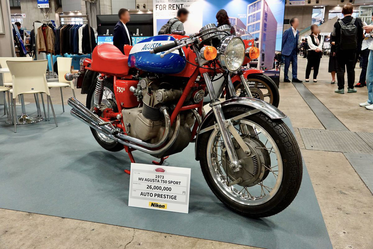 「オートモビルカウンシル2026」の会場には、2台のMVアグスタが展示されていました。この750スポーツは1970年に登場したモデル。展示車両は1973年式で2600万円のプライスタグが付けられていました。カウルレスの流麗なスタイルは、ノスタルジックなイタリアンレーサーの雰囲気。こういうバイクで旅するのは気持ち良さそうです。